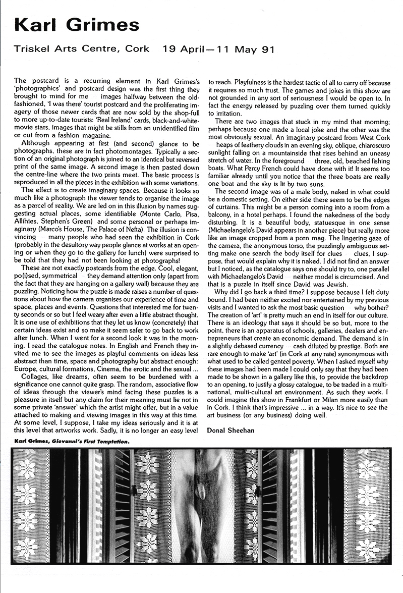 Donal Sheehan. Review of 'Photo Graphic Constructs' at Triscal Arts Centre. Cork